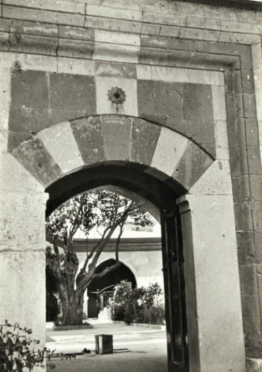 Üçlü çeşmenin devamında sağ tarafında bir mühür olan bir kapı ile karşılaşıyoruz. Bu kapı ikinci avluya çıkıyor. İlginç olan ise bu mührü bir gün önce de Göreme Açık Hava Müzesinde birebir görmüş olmamız. Kapıdan Girince hemen önümüzde çeşmeli bir havuz ve iki tarafı revaklı dikdörtgen bir avlu karşılıyor bizi.