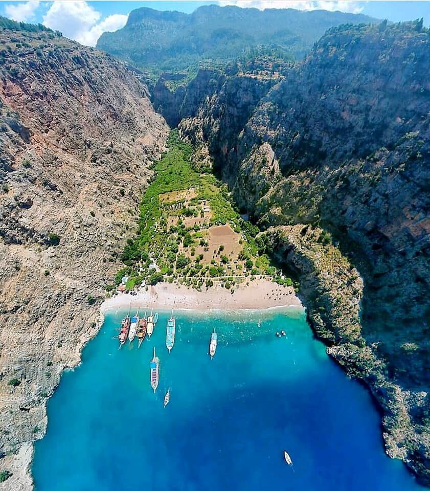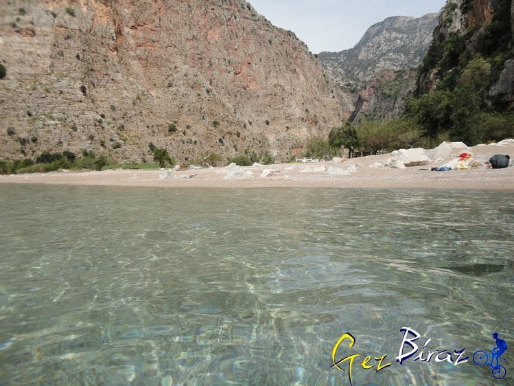 Vadinin denize birleşen noktası kaptan Custo’nun gezdiği denizler gibi berrak ve temiz. Rengi mavi turkuaz ve yeşilin tonlarında suya girdiğiniz her yer farklı bir renk tonunda. Sakin ve kendinizi bulmak sıkıntılarınızı biraz olsun kenara koymak için mükemmel. Eşim denizden sıkılıp kitap okurken ben şnorkel ve palet yardımı ile deniz tabanını tarıyorum. avuç içinden sürünerek geçen balıklar misafirperver bir ev sahibi gibi. Biraz daha ilerledikçe dalgıçları görüyorum. neredeyse denizin içinden büyümüş vadinin sarp kayalığındaki çam ağaçları altında dalış yapıyorlar. İşte Ülkemin en güzel köşesi burası olsa gerek. Kahvaltı yaparken denizden gelen esinti beyninizdeki mikropları alıp götürüyor sanki. Çadırımızı kurabileceğimiz yer için orada bulunan ilgili arkadaşla görüştükten sonra yeri belirleyip hemen işe koyuluyoruz. Kelebekler Vadisi Fethiye bölgesinde gezenlerin en çok uğradığı yerlerin başında geliyor.