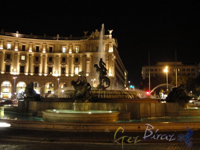 Roma Gezilecek yerler planımızı yaparken bu meydanı listemize almamışız. Ancak Roma sokaklarında Mc Donald’s ararken bu meydana rast geliyoruz. Çok güzel bir ışıklandırma yapılmış olan meydanın ortasında Fountain of Naidas yani “su perileri çeşmesi” yer alıyor. Su perileri çeşmesi de en az diğer çeşmeler kadar önemli mimari bir eser.
