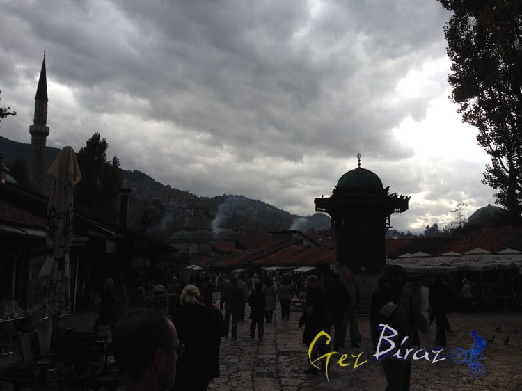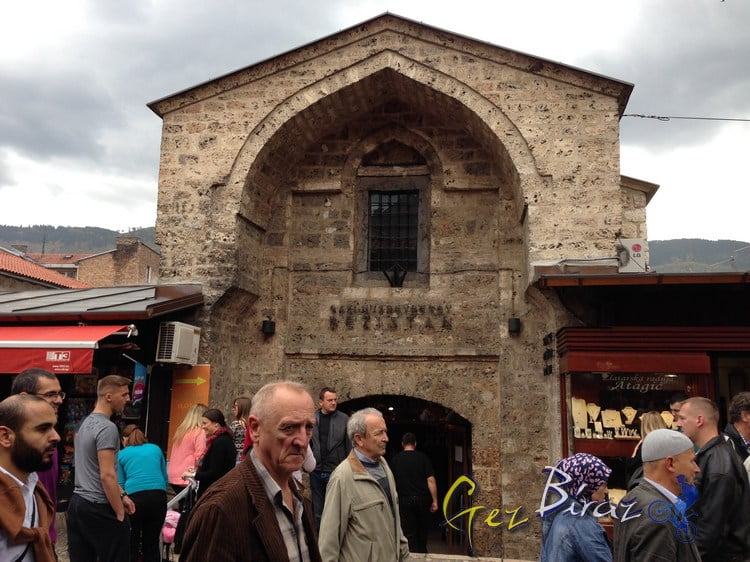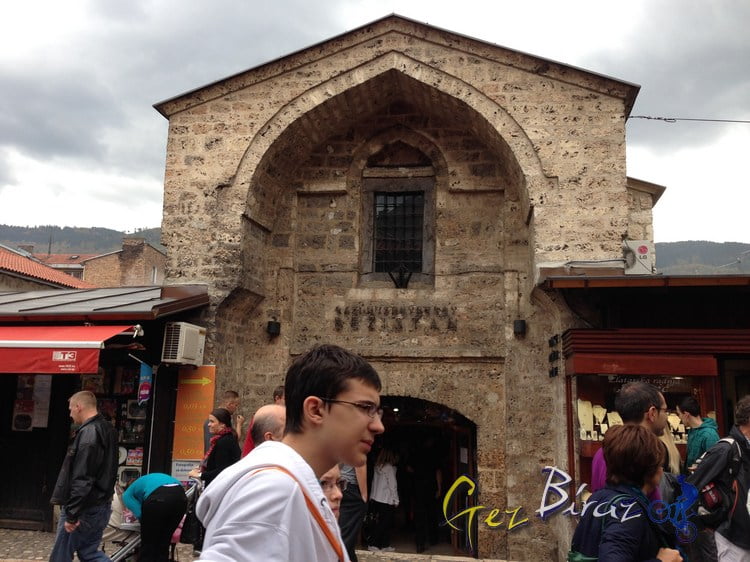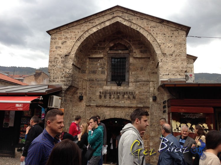 Saraybosna gezisi tüm güzelliği ile devam ediyordu. Binanın arka tarafından çarşı yönünde devam edince tam bir Osmanlı Camisi olan Başçarşı Camiine denk geliyoruz. Revaklı yapı ve kesme taşlı duvarlarının yanı sıra yeşil paslı bakır kubbeleri ile Bursa camilerinden daha orjinal duruyor. Caminin hemen yukarısında yer alan çeşmenin etrafı buluşma noktası gibi yoğun bir kalabalık. Fotoğraf çekilen bu alanda hemen karşıya açılmış bir kebapçı var. Kebap için burada kısa bir mola veriyoruz. Ancak her noktası ile Bursa’nın ikizi olan bu yerde kebap konusunda bir benzerlik bulamadığımı söylemek zorundayım. Kebapçıdan tekrar başçarşı yönünde geri dönüş yapıyoruz. Kapalı çarşının içerisi bizim Bursa bedestenlerine benzerlik gösteriyor. Burada yabancılık çekmeniz söz konusu değil. Fiyatlar da alabildiğine uçmus durumda.