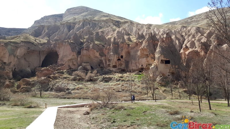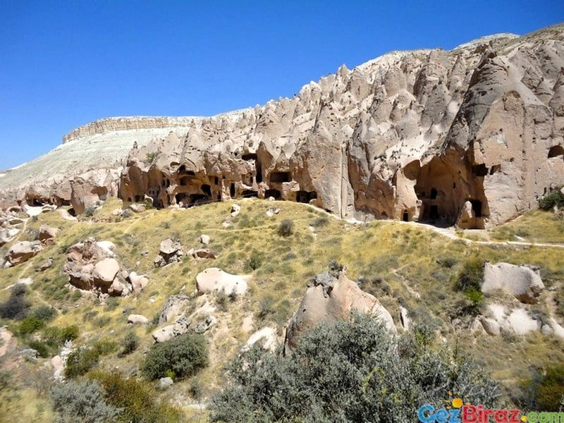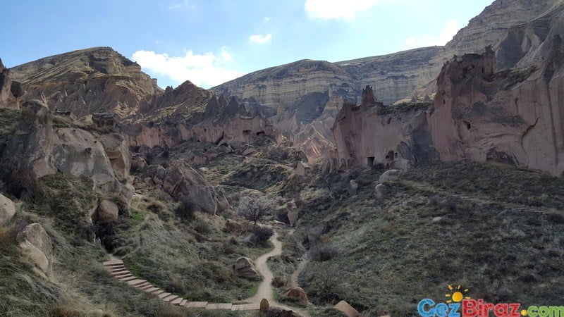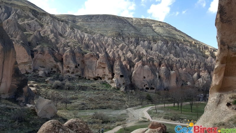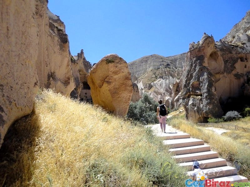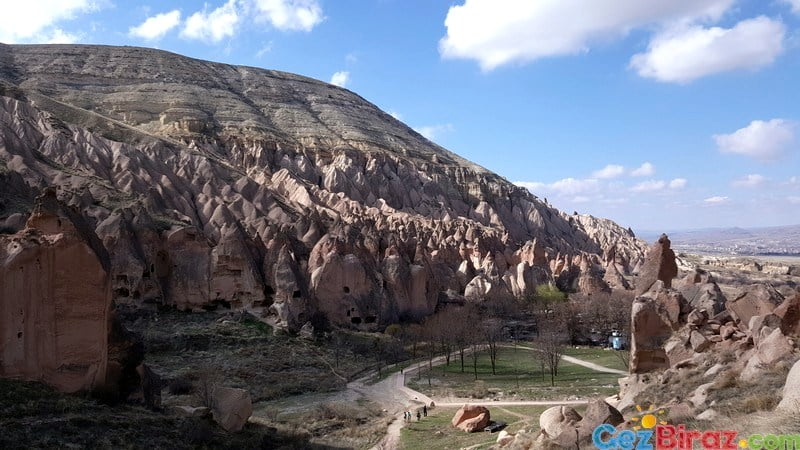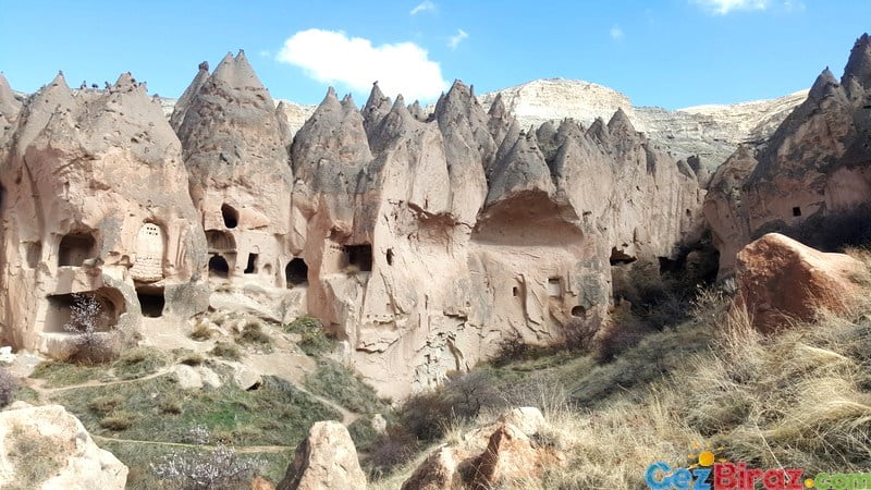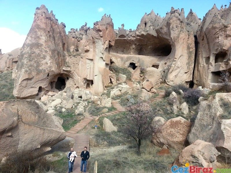 Hemen önümüzde Türk turist grubu var ve başlarında rehberleri. Vadinin her iki tarafını gören bir noktada Zelve hakkında bilgiler veriyor. Hemen rehbere yaklaşıp biz de dinliyoruz bir bilenden Zelve’yi. Toplam üç vadinin Zelve olarak adlandırılmış burada ve bu bölgeye Aktepe deniyor. Aktepe denmesinin nedeni üstten bakıldığında tepelerin beyaz bir örtüye sahip olmasıymış.